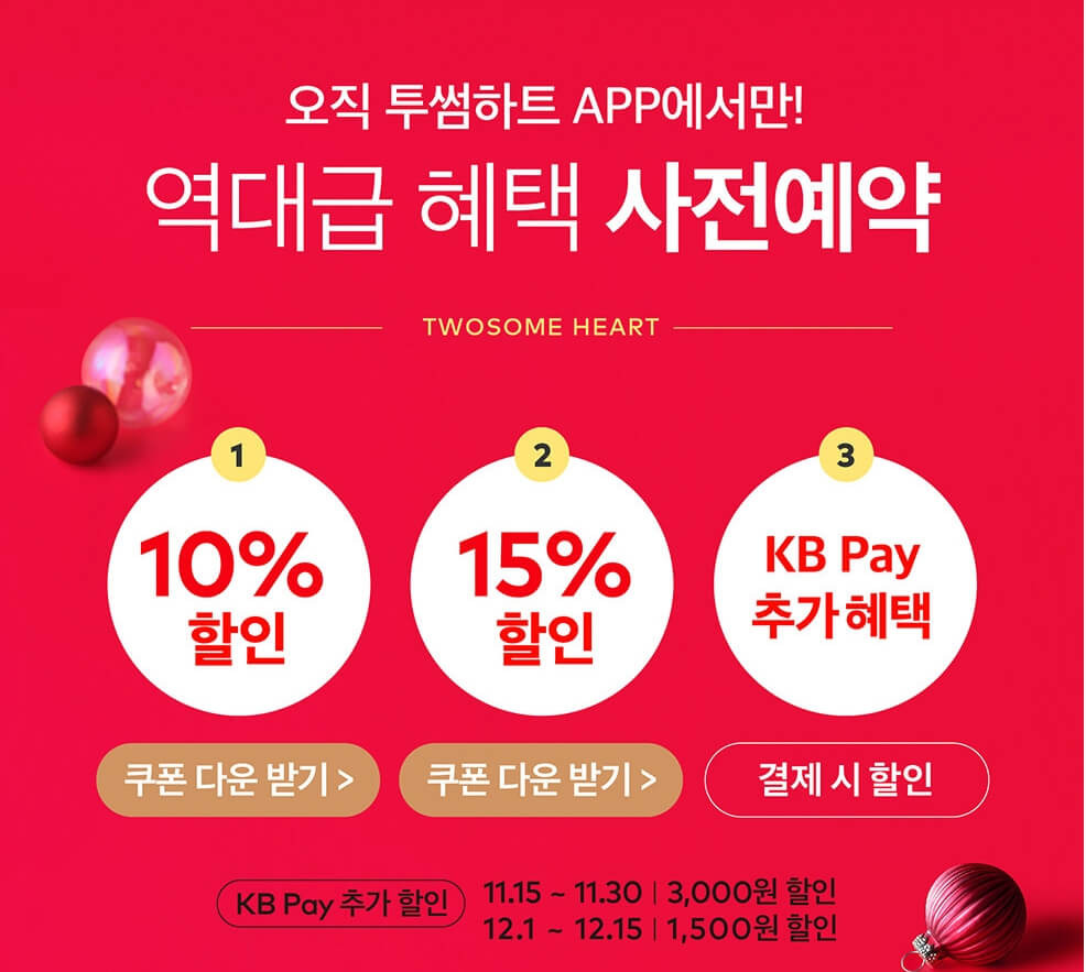 투썸플레이스는 사전예약 고객에게 특별한 혜택을 제공합니다. KB Pay를 이용하면 추가 할인 혜택도 받을 수 있습니다.