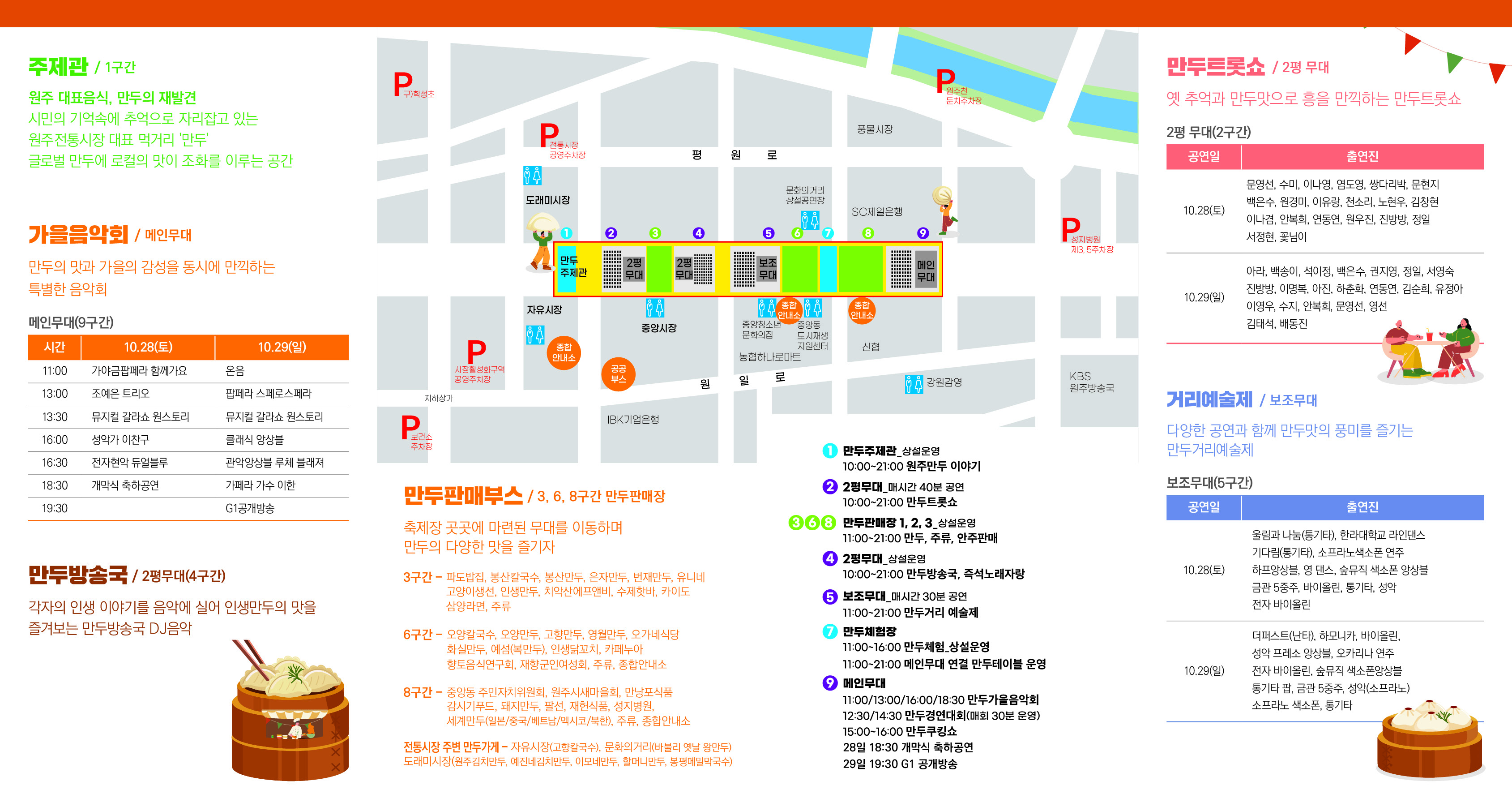 그래서 올해 제 2회 원주만두축제를 2일에서 3일로 연장해 10월 25일(금)~10월 27일(일) 진행됩니다.